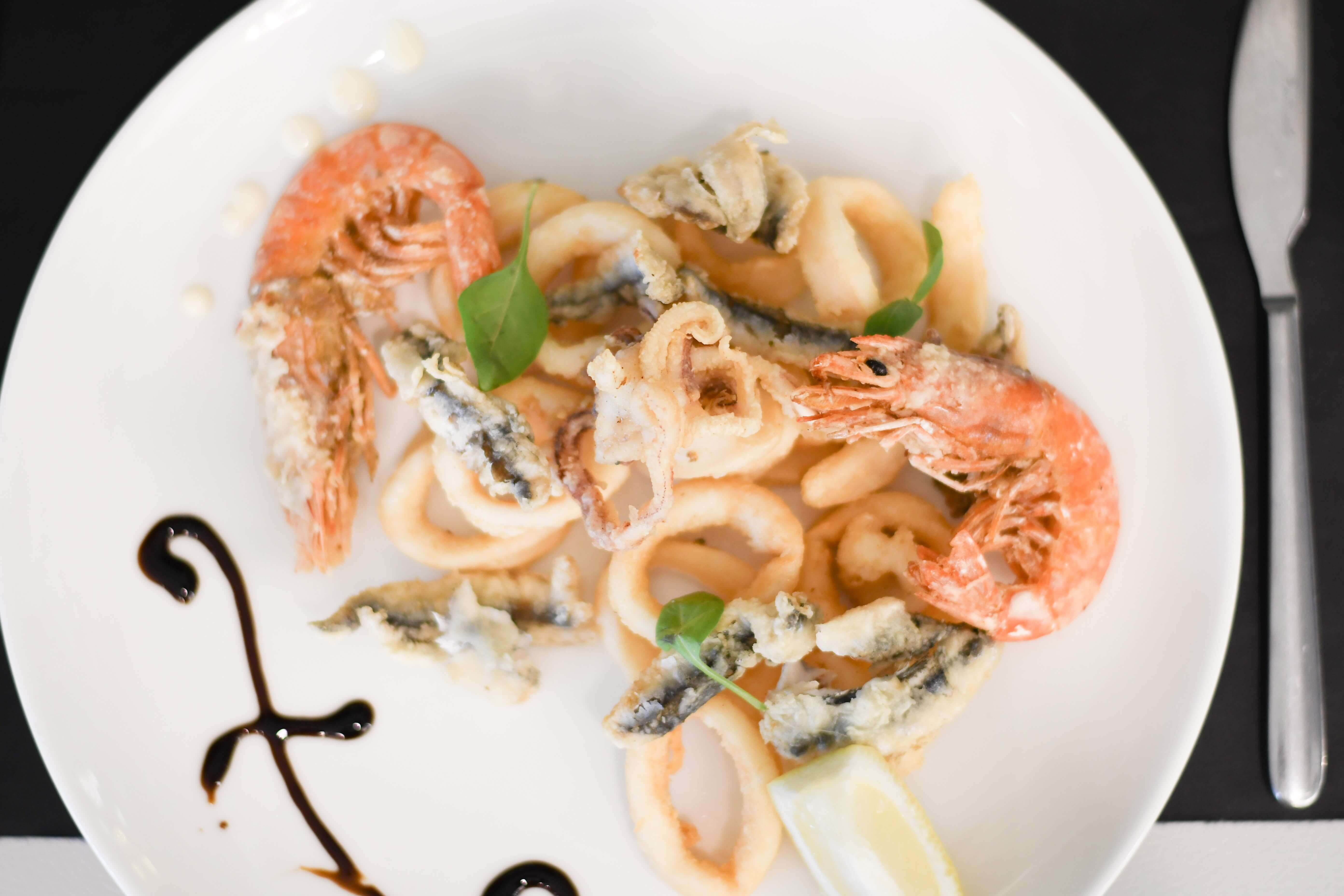 FRITTURA del Mediterraneo con salsa spicy: calamari, gamberi Sicilia e sardine